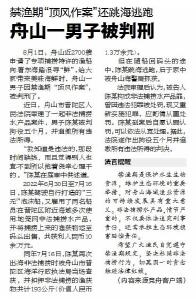 8月以来,随着舟山近2700艘申请了专项捕捞特许的渔船向东海进发,经过数月“舌尖禁渔”的广大市民又享受到了鲜活梭子蟹的美味。而普陀法院的这起判决再次提醒人们,没有禁渔期的严守禁令,就没有出海归来后的鱼蟹满舱。