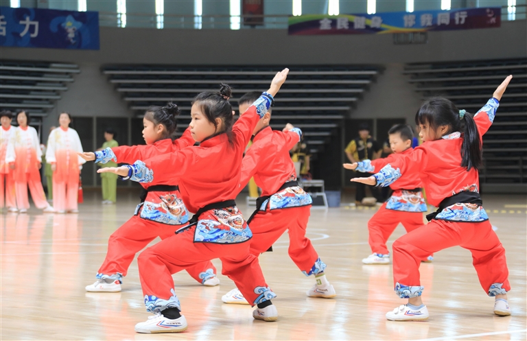昨天,在市体育馆举行的2024年舟山市武术展示大会,吸引了来自全市21支代表队共235名武术爱好者参与。参赛人员现场展示混元太极拳、观音拳、舟山船拳等20个项目,呈现了一场精彩的武术视觉盛宴。记者 陈永建 摄