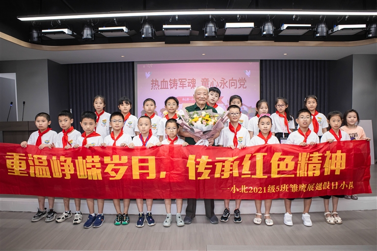 近日,我校三(5)班同学齐聚荷花社区会议室开展“行走的思政课”社会实践活动,听百岁老兵讲述抗美援朝的英雄故事。