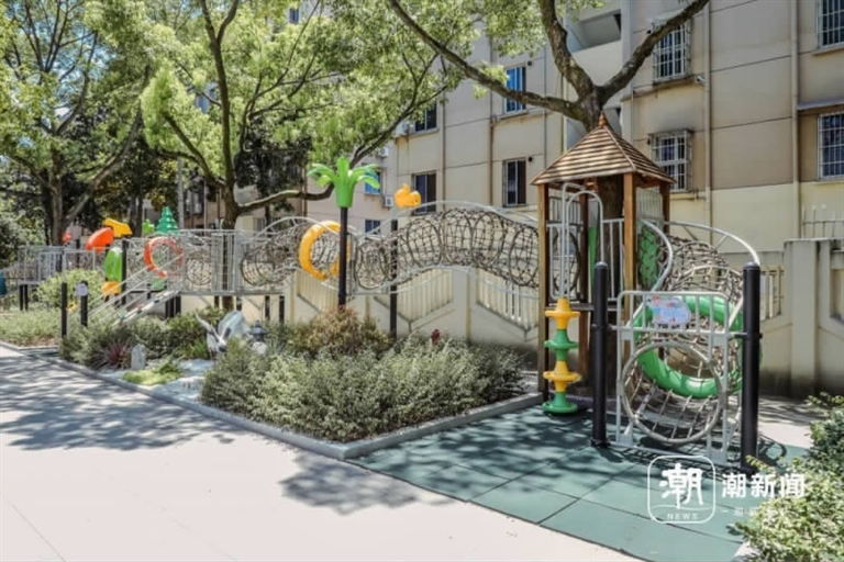 改造后的幼儿园保留了滑梯和攀爬架,给探望老人的孩子提供玩耍的地方。