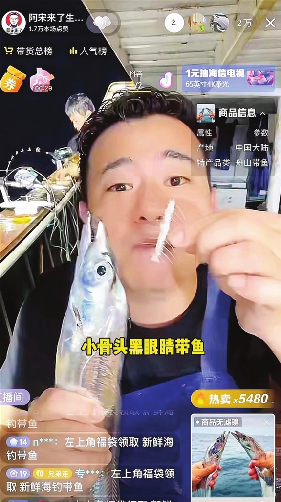 8月6日晚上10点,阿宋准时开播,镜头前他卖力吆喝,面前是几条银光发亮的活带鱼,而背后是广袤幽深的大海。