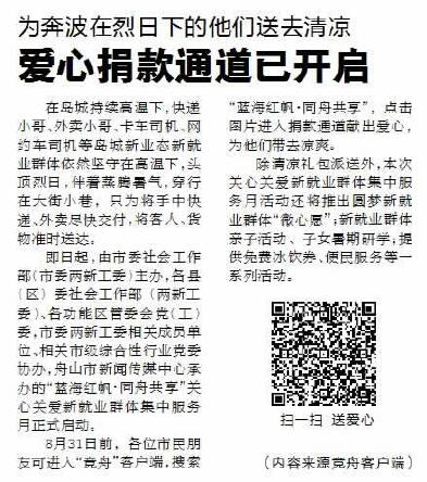 8月17日上午,由市委社会工作部(市委两新工委)主办、市新闻传媒中心承办的“蓝海红帆 同舟共享”关心关爱新就业群体服务月活动启动。全市200余名志愿者共同行动,为新就业群体派发清凉礼包。