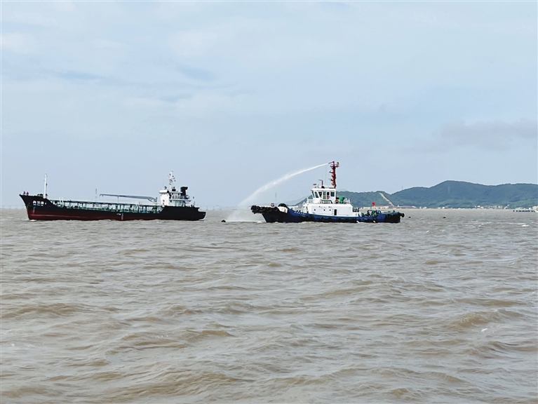 本报讯 8月20日下午,2024年舟山东南部海域船舶碰撞溢油综合应急演习在鲁家峙南侧、西闪岛以北水域举行。