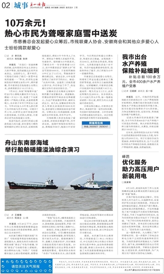 舟山东南部海域举行船舶碰撞溢油综合演习