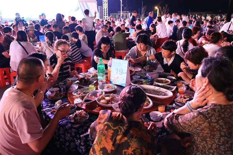 傍晚时分,长涂镇双拥广场人头攒动,黄鱼宴准时开席。餐桌上,“黄鱼五吃”是重头戏,主要菜式包括雪菜大黄鱼、糖醋大黄鱼、葱油大黄鱼、黄鱼虾仁饺、黄鱼子鲞拼等,让前来参加活动的游客和街坊大饱口福。