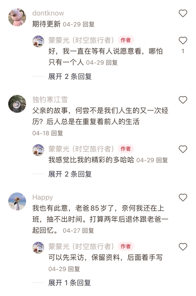 我把父亲的回忆录连载到网上,很多人都在追更。和我父亲同年代的人会在里面找到共鸣,年轻人通过这些故事了解历史。