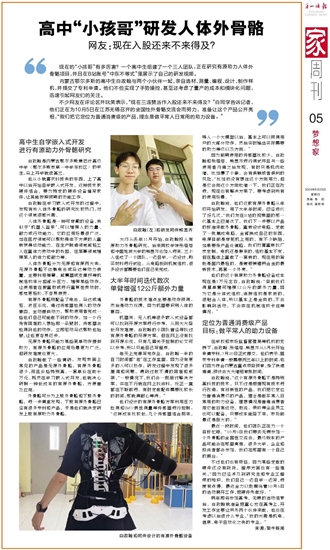高中“小孩哥”研发人体外骨骼