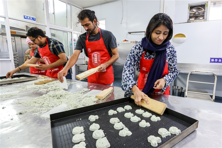 近日, 出席“in舟山 连世界”2024舟山国际传播活动的海外推介官在岱山县长涂岛上体验非遗文化。当天,海外推介官在品尝了可以吃的“石头”后,还体验了倭井潭硬糕的制作。通讯员 姚峰 蒋咪 摄