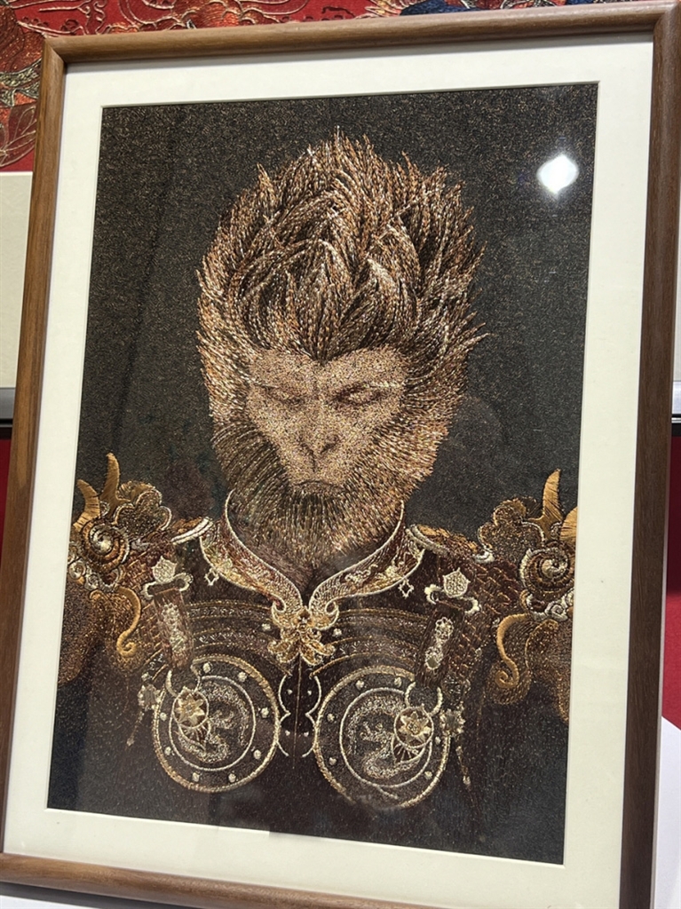 8月26日,第23届中国框业与装饰画展览会刚在义乌国际博览中心开幕,位于C馆内的“北台宫藏”展位便被围得水泄不通。其中最引人注目的莫过于时下热门IP——《黑神话:悟空》。