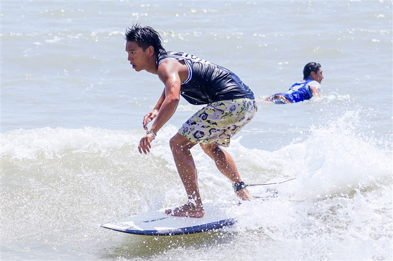 8月24日至25日,第二届东沙冲浪公开赛在朱家尖东沙海滩举行。为期两天的赛事将冲浪、陆地冲浪板和街舞三种活力十足的运动项目相结合,吸引200多名国内外选手追波逐浪、同场竞技。