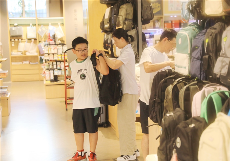 近日,岛城一书店,小朋友和家长一起选购文具 记者 陈永建 摄