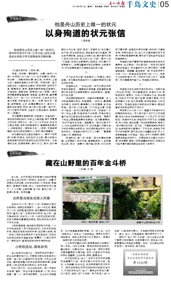 张信是舟山历史上唯一的一名状元。他中状元时才21岁。三年之后,这位从海岛走出来的少年才俊就被朱元璋杀害。