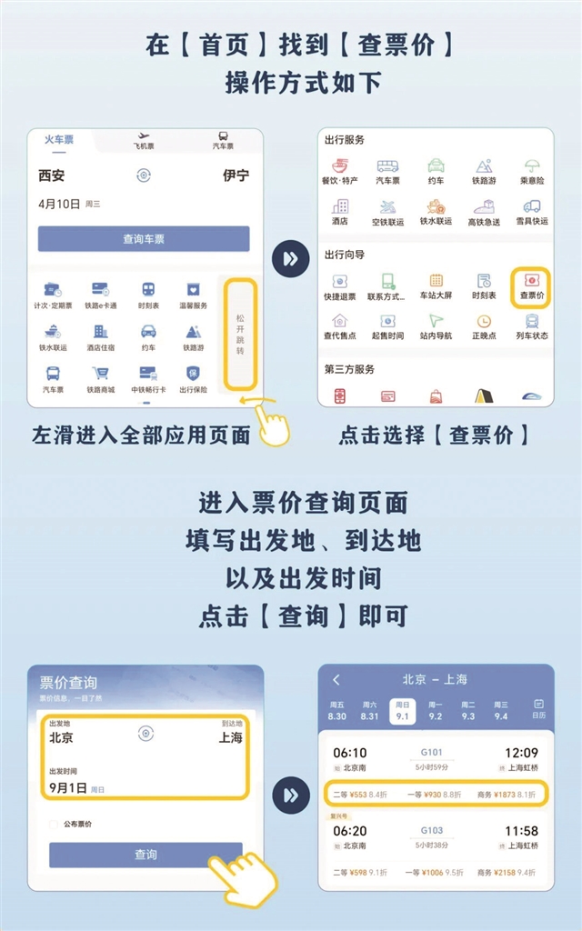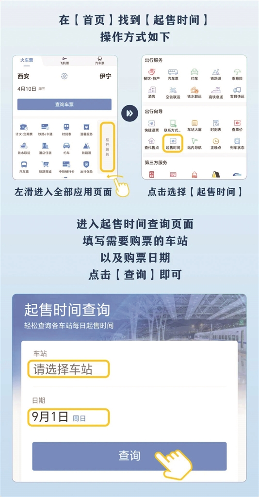 如何了解不同车站的开售时间?如何查询不同车次的票价?