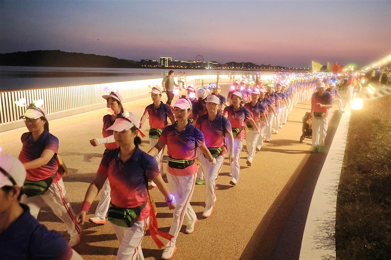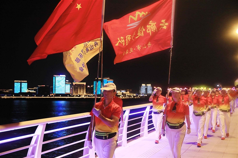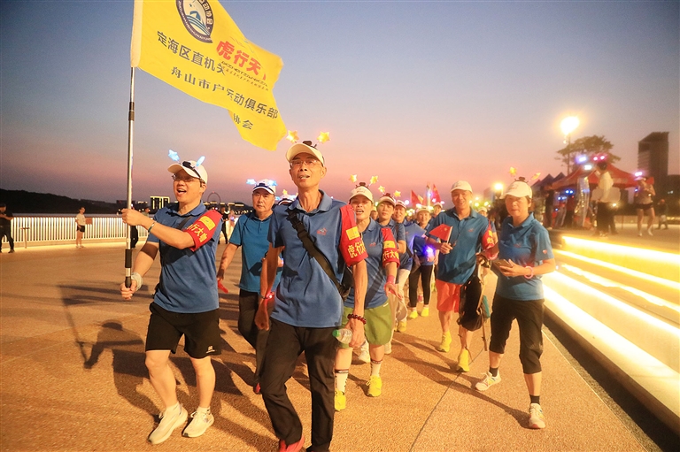 由市文广旅体局主办的2024美丽舟山千里行第二站——最美海岸线·荧光夜徒步活动,于近日举行,吸引市内外500名健身爱好者参与。本次活动全程10.5公里,途经新城市民广场、港岛大桥、新城大桥等地,让市民在运动中感受城市的新面貌和发展成果。 记者 陈永建 摄