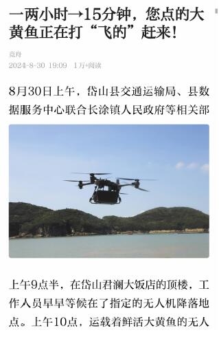 无人机“送黄鱼”背后蕴藏低空经济发展潜能