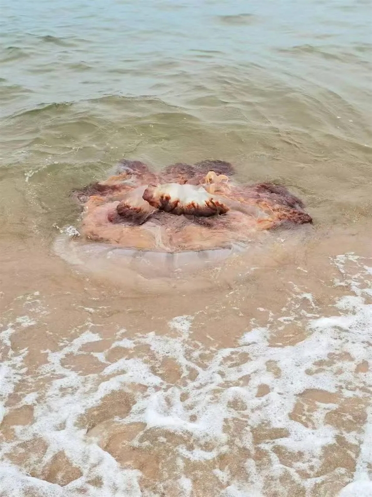 近日,杭州余杭的沈先生与朋友相约去海滨浴场游玩,当天下午6点多,沈先生与朋友正在戏水时,突然感觉到右侧手臂传来大面积针刺般的剧痛。转头一看,水面上正漂浮着一块巨大的海蜇。