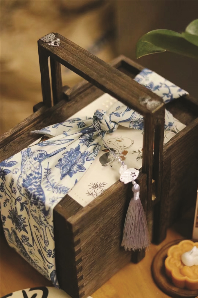 “我要么用木盒,要么用竹篮礼盒,买月饼礼盒的客人基本上都是送人,这些包装送去之后,吃完了月饼,还可以把包装利用起来,这些漂亮的竹篮和木盒拿出去露营也是很实用的。”