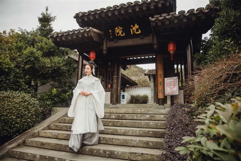 普陀沈院是为纪念晋朝时期从百济(韩国)嫁到普陀的孝女沈清而修建的中韩友好文化园。这里拥有绝美的自然山水和古典的园林建筑,自带古风感。身着汉服,一回眸,一蹙眉,便留下了一组韵味十足的照片。