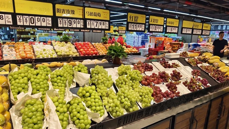 店员表示,现在阳光玫瑰的价格一般不会超过10元/500克,不单是阳光玫瑰,其他品种的葡萄价格均有所下跌。目前,葡萄整体均价比去年低10%左右。