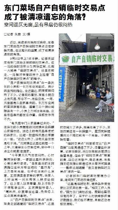 定海东门临时菜场的“自产自销临时交易点”,因为狭小逼仄,闷热无比(9月9日晚报报道)。难以想象,那些提篮小卖的老人是怎样熬过这个夏天的。