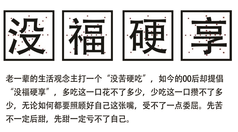 与“没苦硬吃”截然相反,年轻一代把“没福硬享”挂在嘴边。
