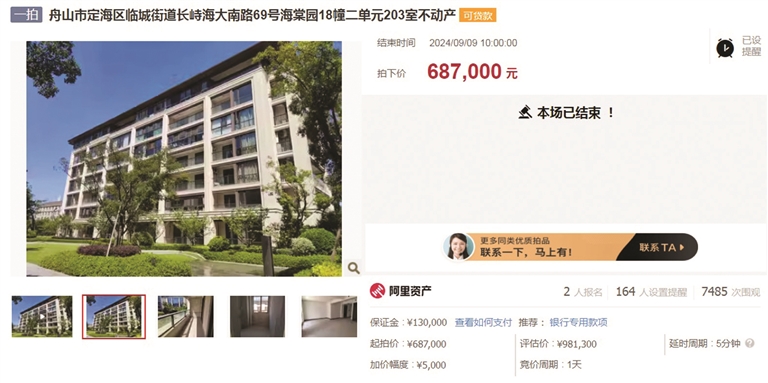 9月10日,一套位于朱家尖的绿城东沙度假村80平方米一楼带车位精装修公寓,以60.9万元的价格,在阿里资产平台成交。该房源在2011年开盘时,价格就超过100万元,而现在,是以当年买入价的不到六折成交,显示市场相当低迷。