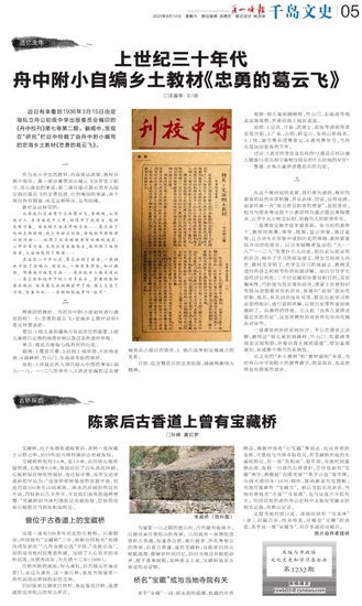 上世纪三十年代舟中附小自编乡土教材《忠勇的葛云飞》