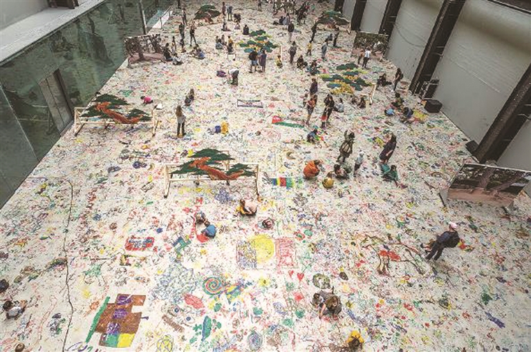 泰特现代美术馆在一次展览中鼓励游客在地板上涂鸦