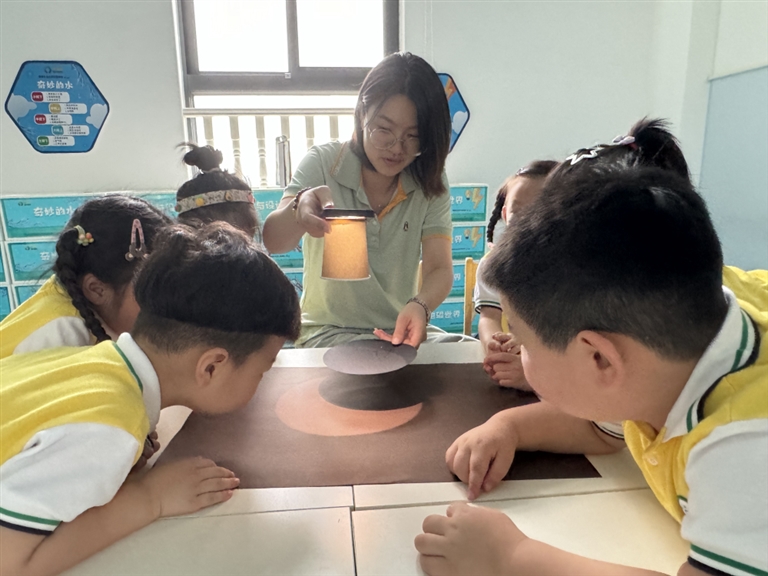 9月12日上午,普陀区城北幼儿园开展了“当中秋遇上‘月探’”科学体验活动,引导孩子们了解月相变化的科学原理,直观感受月亮形态随时间更迭的奇妙过程,在他们的心灵深处种下了探索宇宙奥秘的种子。通讯员 贝迪一 摄