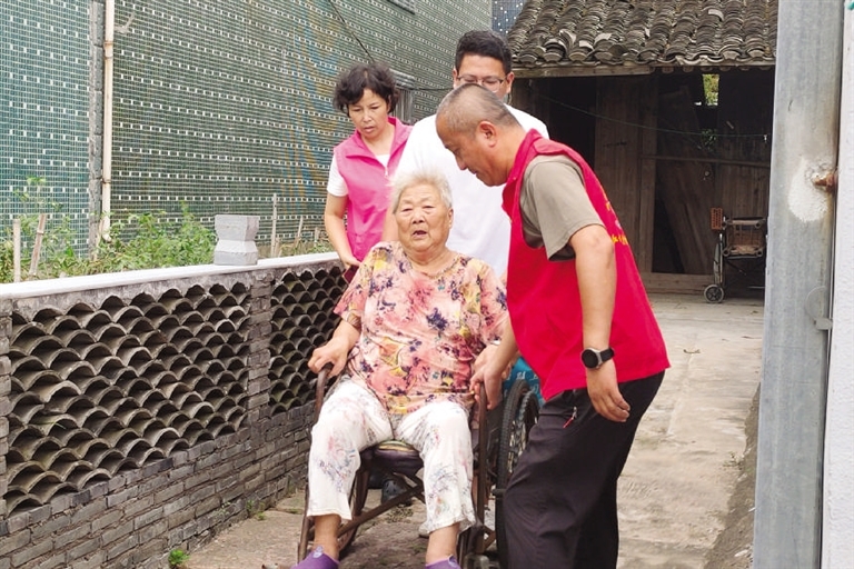 定海区盐仓街道叉页河村干部将独居老人撤离危房 图/毛燕芳