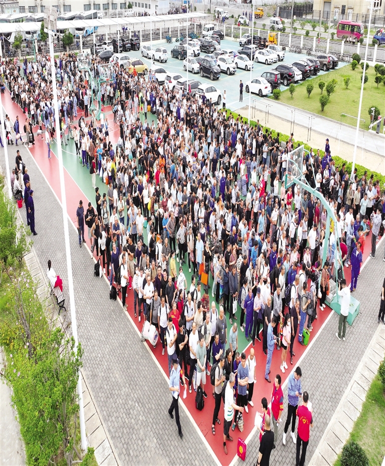 舟山绿色石化基地上的9000多名建设者转移至岱山本岛各个避灾安置点 图/郭超