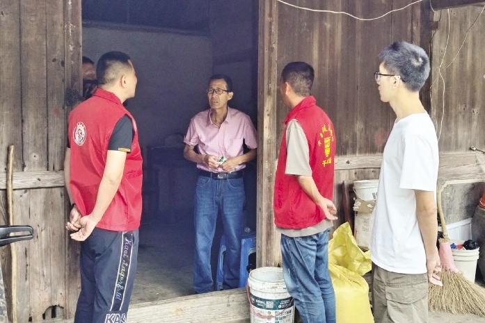 千岛街道红茅山社区的干部挨家挨户上门动员,将需要安置的群众第一时间转移到安全区域 图/陈妤