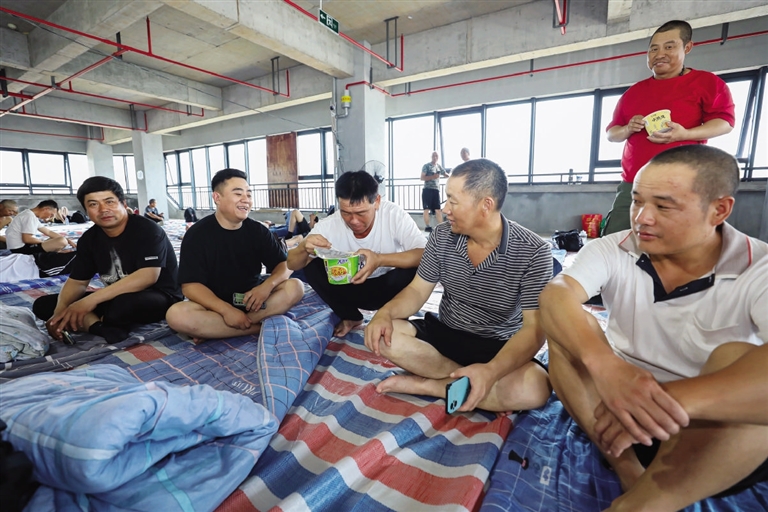 金塘新材料产业园的工人在安置点休息 图/张磊