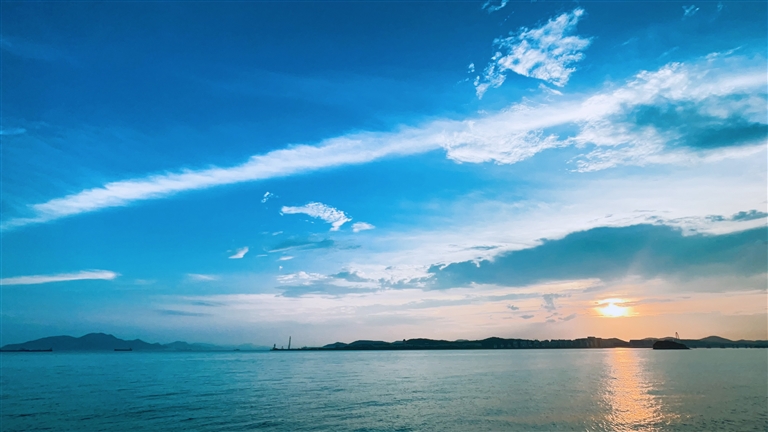 后来又在好多个黄昏去过那里,那里绝对是看夕阳沉下海平面的绝佳观景地。由于海面辽阔,几乎没有什么遮挡物,船只慵懒地泊在火红的余晖里,夕阳就在这些船只的背后一点点下沉,海面从金黄色渐变为血红色,最后成为墨蓝色,直至天黑后看不清颜色。