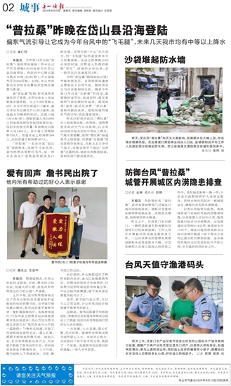 “普拉桑”昨晚在岱山县沿海登陆