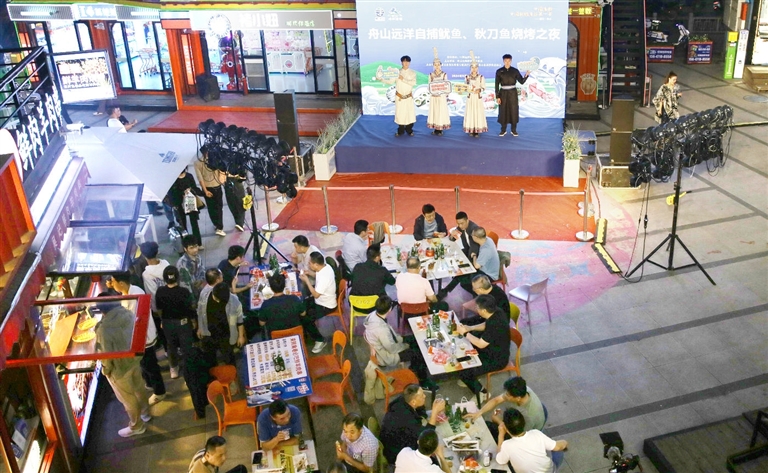 18日晚,在呼和浩特转角夜市街的繁华地段,由舟山远洋渔业企业带来的“鱼香”烧烤之夜拉开序幕。现场气氛热烈,啤酒+撸串,觥筹交错,众人感受来自大海的“豪迈”和草原的“热情”。