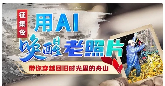 您提供的照片将由“竞舟”选取后,借助AI的力量,制作成视频,带你穿梭75载舟山光阴。