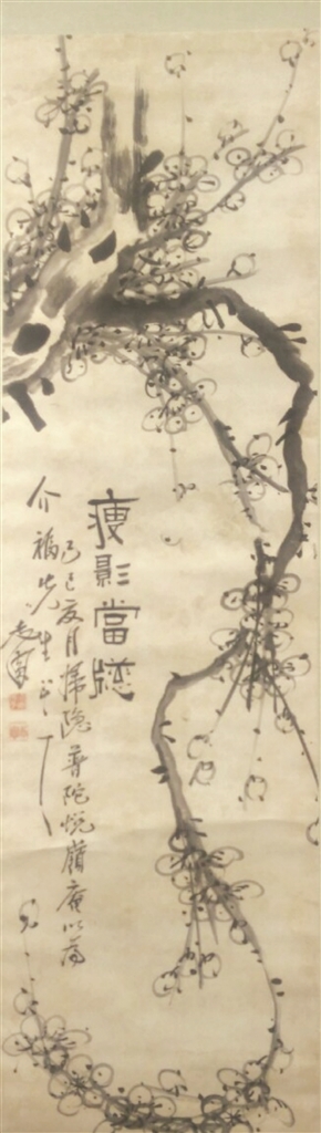 志圆虽时称为普陀三老,但卓尔不群,远离世俗,闭关自守,独与梅花为友,因而他的事迹少见于普陀山的史料之中,也鲜于世人所知。他的《墨梅图》传世不多,舟山市徐正国博物馆馆藏志圆书画“墨梅图题诗”和墨梅“瘦影当窗”可谓是其《墨梅图》传世之精品。
