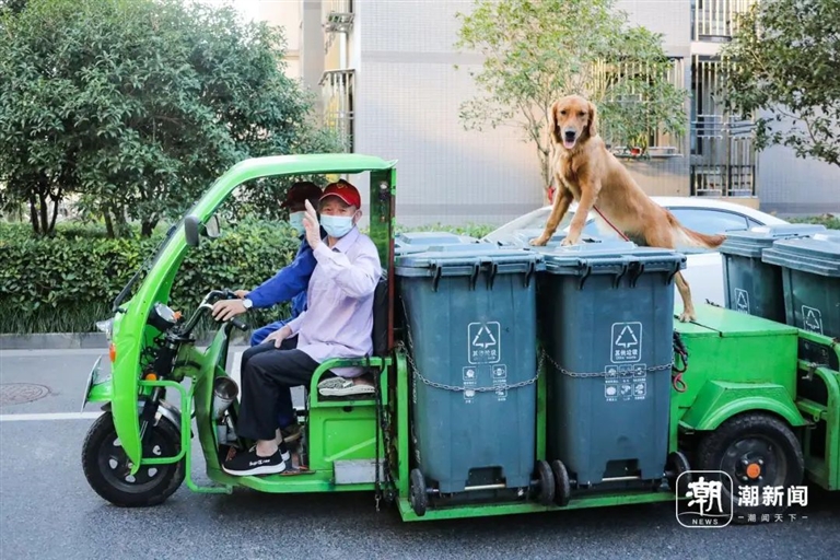 三年前,杭州钱塘区下沙街道元成社区里,几乎每天早晚都能看到许国兴的绿色垃圾清运车。车上坐着父亲许成标和金毛犬“平安”。