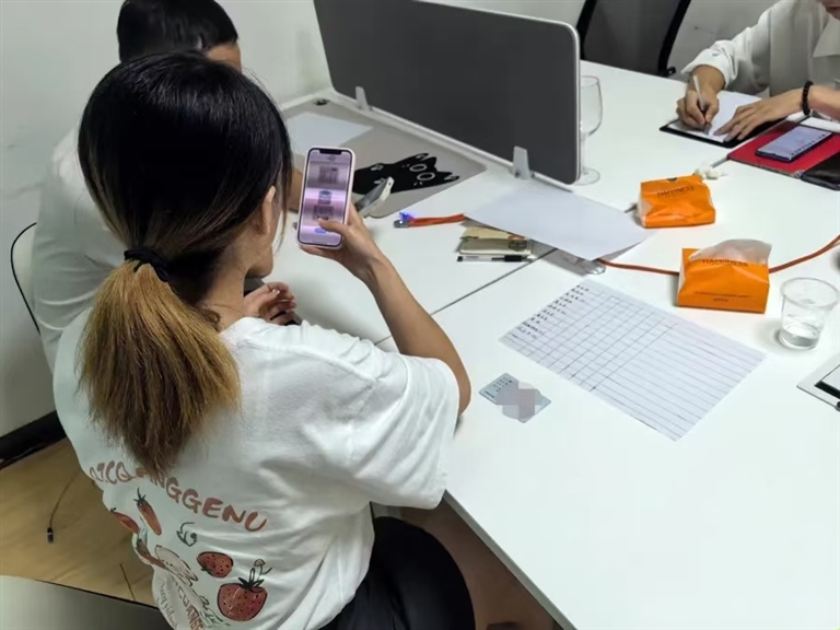 11个人每人都要完成30多个手机号的实名认证,老板称预计要当天下午6时才能“完工”。记者摸清套路后便借故离开,对方很是警觉,先要求记者当面退群,并删除聊天记录。记者照办后,对方又提出要检查记者手机相册,核查是否拍下照片。记者拒绝,僵持中记者拨打“110”报警求助才得以顺利离开。