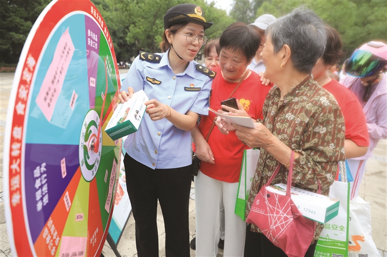 昨天,定海区食药安办联合市场监管、卫健、公安、城管等部门以及街道在海山公园开展2024年全国食品安全宣传周现场活动,通过游戏互动、设列展板、发放资料、提供咨询、快检服务等,向群众宣传食品安全相关知识。