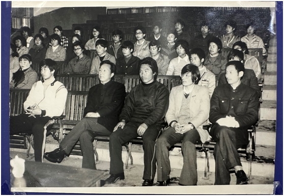 舟山师专87春季中文的开学典礼仪式,前排右二戴眼镜者为唐志龙老师