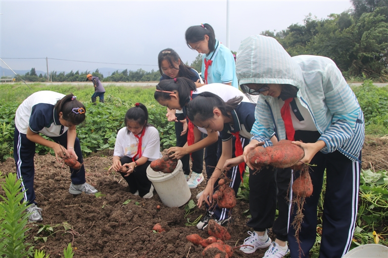 9月22日是我国二十四节气的“秋分”,也是第7个“中国农民丰收节”。普陀区六横镇蛟头初级中学组织部分学生走出校门,走进田间地头,亲身体验收获的喜悦。通讯员 刘生国 徐建君 文/摄