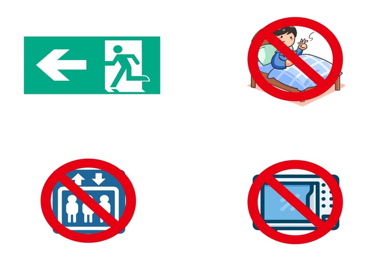 疏散:听从宾馆人员的口头和广播引导