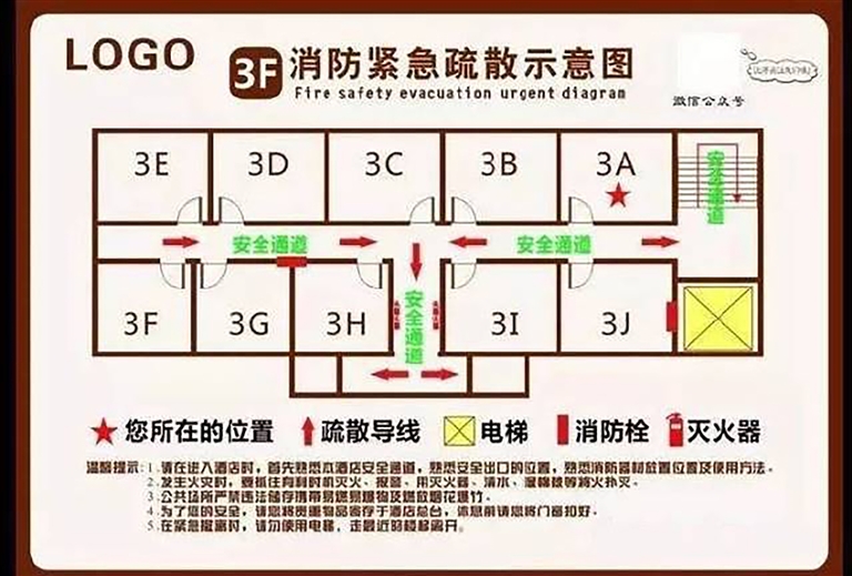 进入房间第一步,先仔细阅读门后的紧急疏散图。