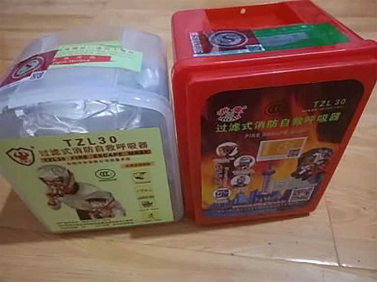 每个房间内都配有过滤式消防自救呼吸器。