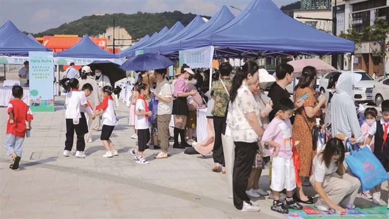 9月28日上午,“渔都礼城 文明普陀——分‘投’有道,‘绿’动未来”垃圾分类宣传活动在沈家门夜排档广场举行。本次活动由普陀区精神文明建设指导中心、普陀区综合行政执法局主办,以游园打卡的趣味方式,提升市民对垃圾分类的知晓率、参与率和投放准确率,营造“垃圾分类 人人参与”的良好氛围。