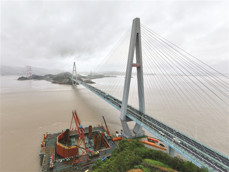 桃夭门公铁两用大桥主墩开始安装钢围堰