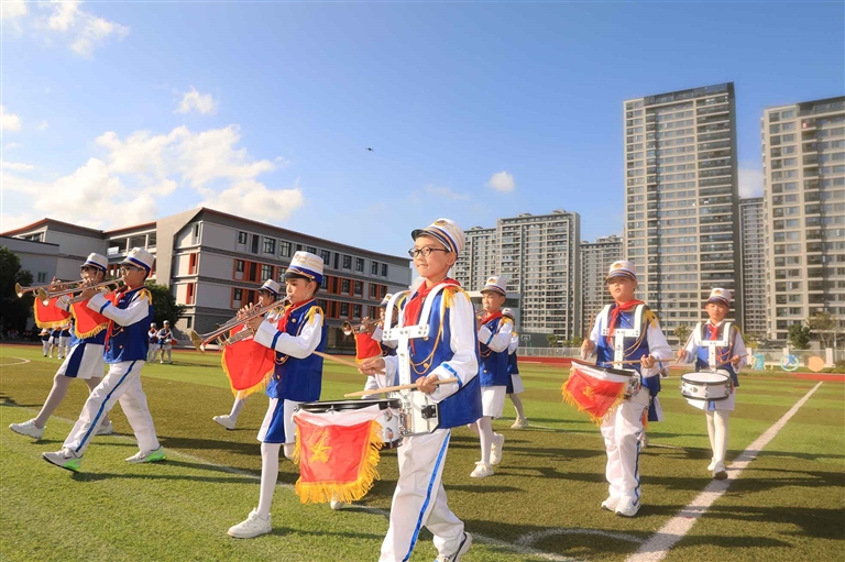 昨天是第75个少先队建队日,10月12日,由团市委、市教育局、市少工委主办的舟山市纪念中国少年先锋队建队75周年“红领巾爱祖国”主题队日活动暨少先队鼓号队风采展示活动在舟山市第二小学北校区隆重举行,全市8所小学600余名少先队员参加。活动现场,参赛的少先队员们身穿统一服装,踏着铿锵有力的步伐,在各式各样的队形中展示新时代少先队员的风采。
