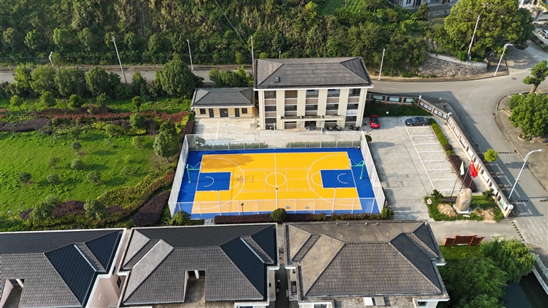 普陀区六横镇石柱头村因六横电厂建设需要被整体搬迁到附近的嵩山村,这也成了六横镇最大的一个集中搬迁安置小区。为丰富村民的业余文体生活,村里最近投入20余万元建起了一个标准化笼式灯光球场。这一由蓝、黄、白三色铺成的球场,在航拍镜头下显得格外靓丽。据了解,目前,六横镇共有这样的笼式球场7个。 通讯员 刘生国 摄
